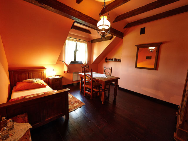 Nabízíme Vám ubytování ve čtyřech prostorných pokojích s celkem 13 lůžky ve zvláštní atmosféře minulé éry. Pokoje jsou vybaveny stylovým dřevěným nábytkem. Každý pokoj má vikýř a střešní okno. Všechny pokoje jsou vybaveny koupelnou se sprchovým koutem. Na chodbě je běžně přístupná lednička. Zajistíme vám intimní a intimní odpočinek.